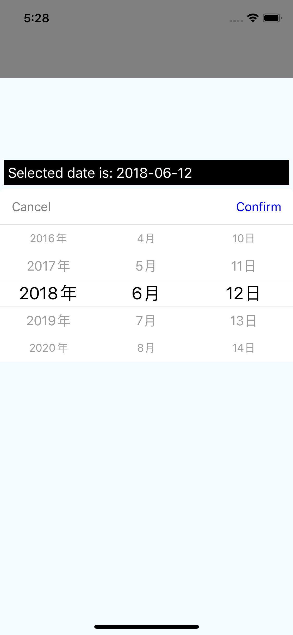 | confirm | function | Tool bar confirm button callback with a date string like "2020-06-10". |