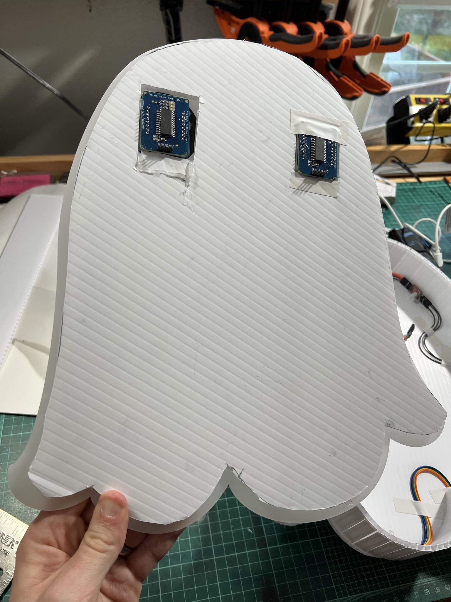 - 2x 8x8 LED Matrix with I2C Backpack -- Comes in multiple colors, but the blue can be hard to resolve from a distance.